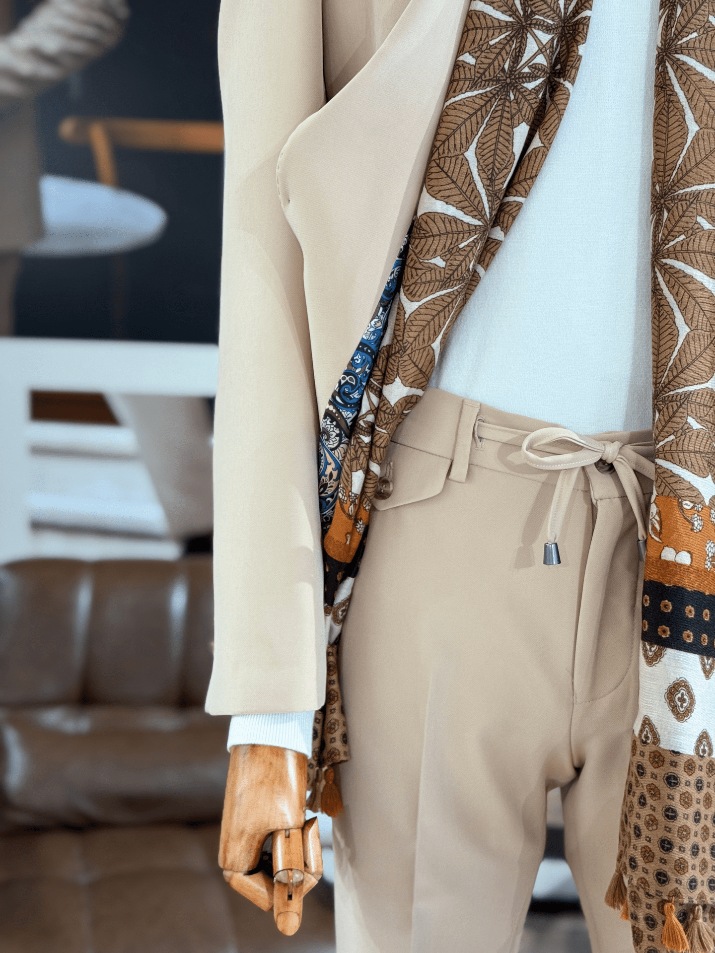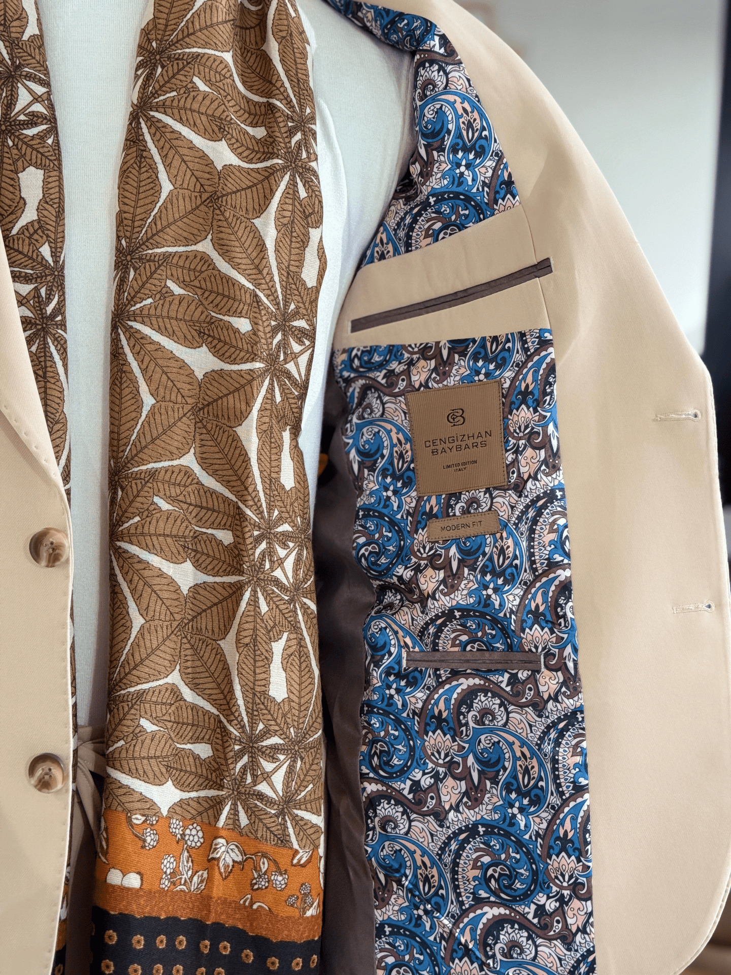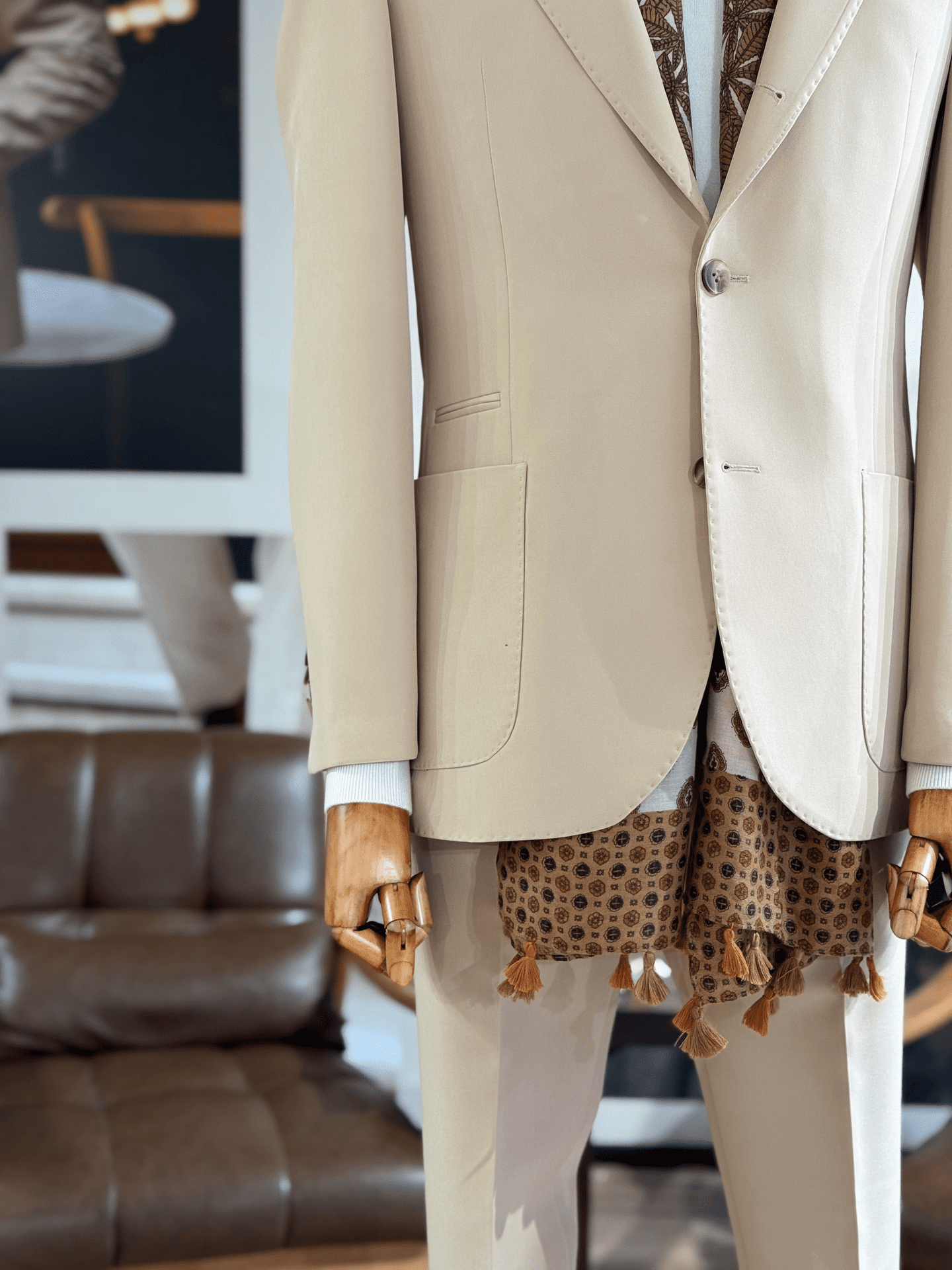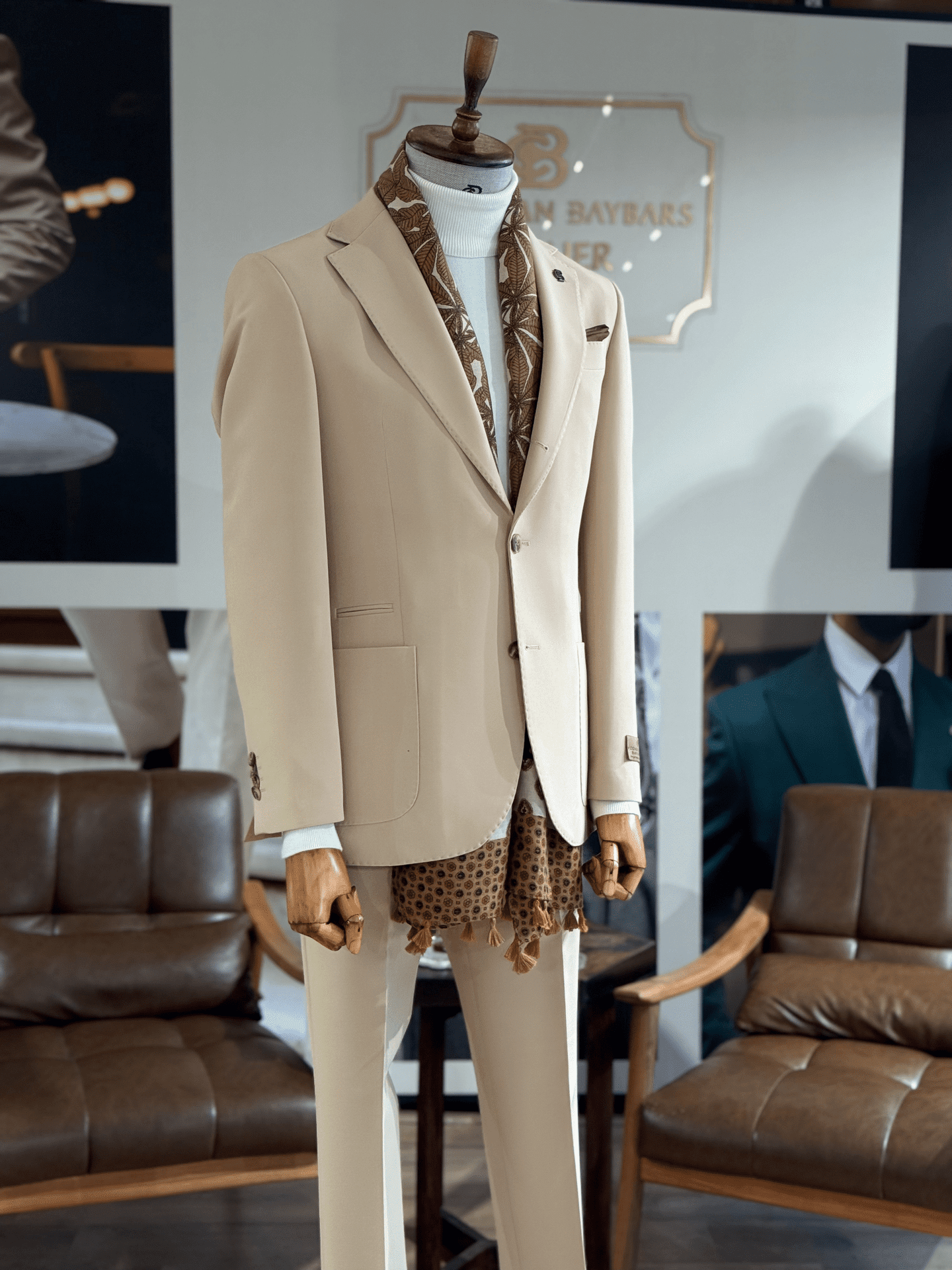* Detaylar: Sivri yaka süs torba cep kruvaze takım elbise