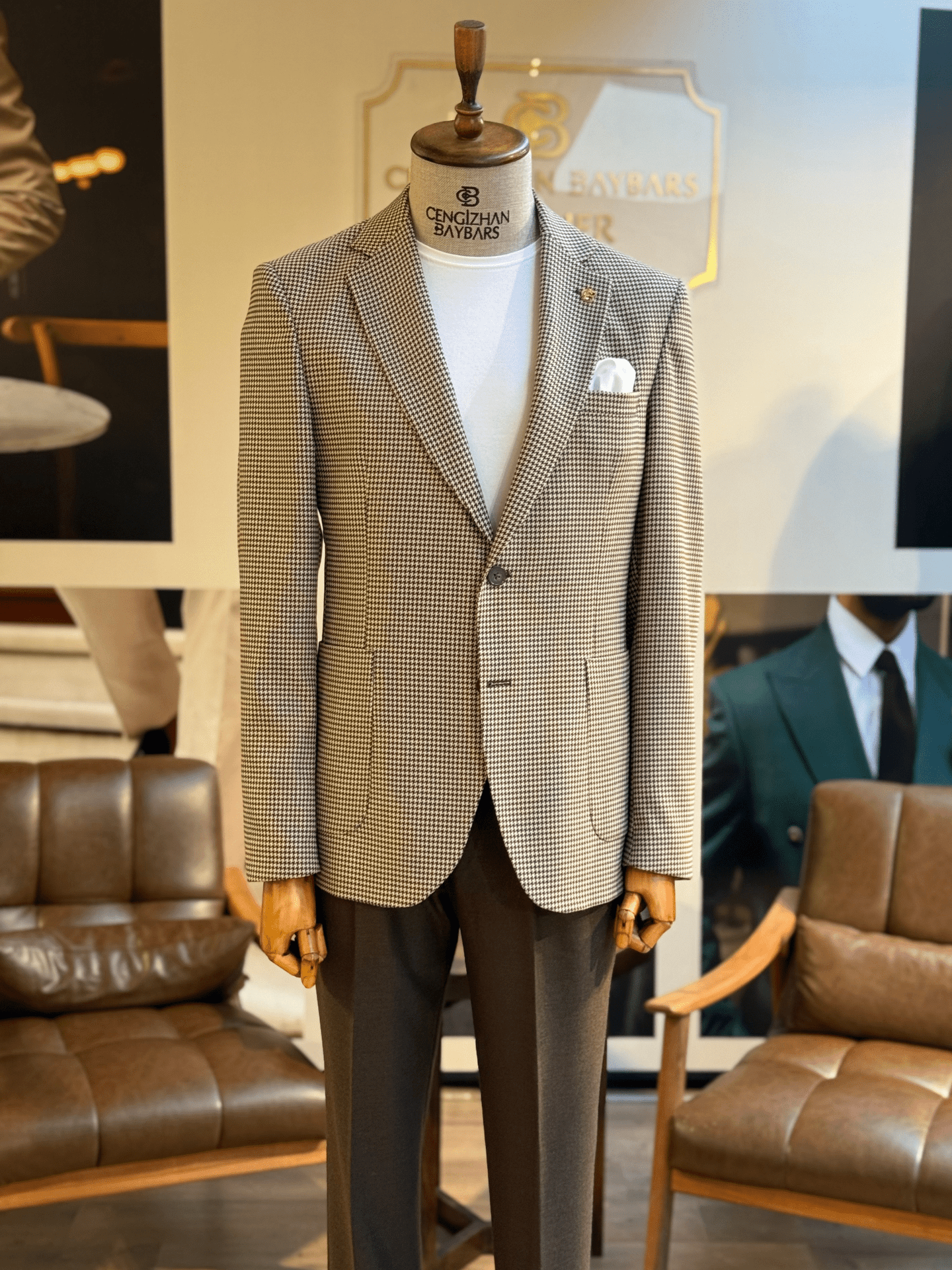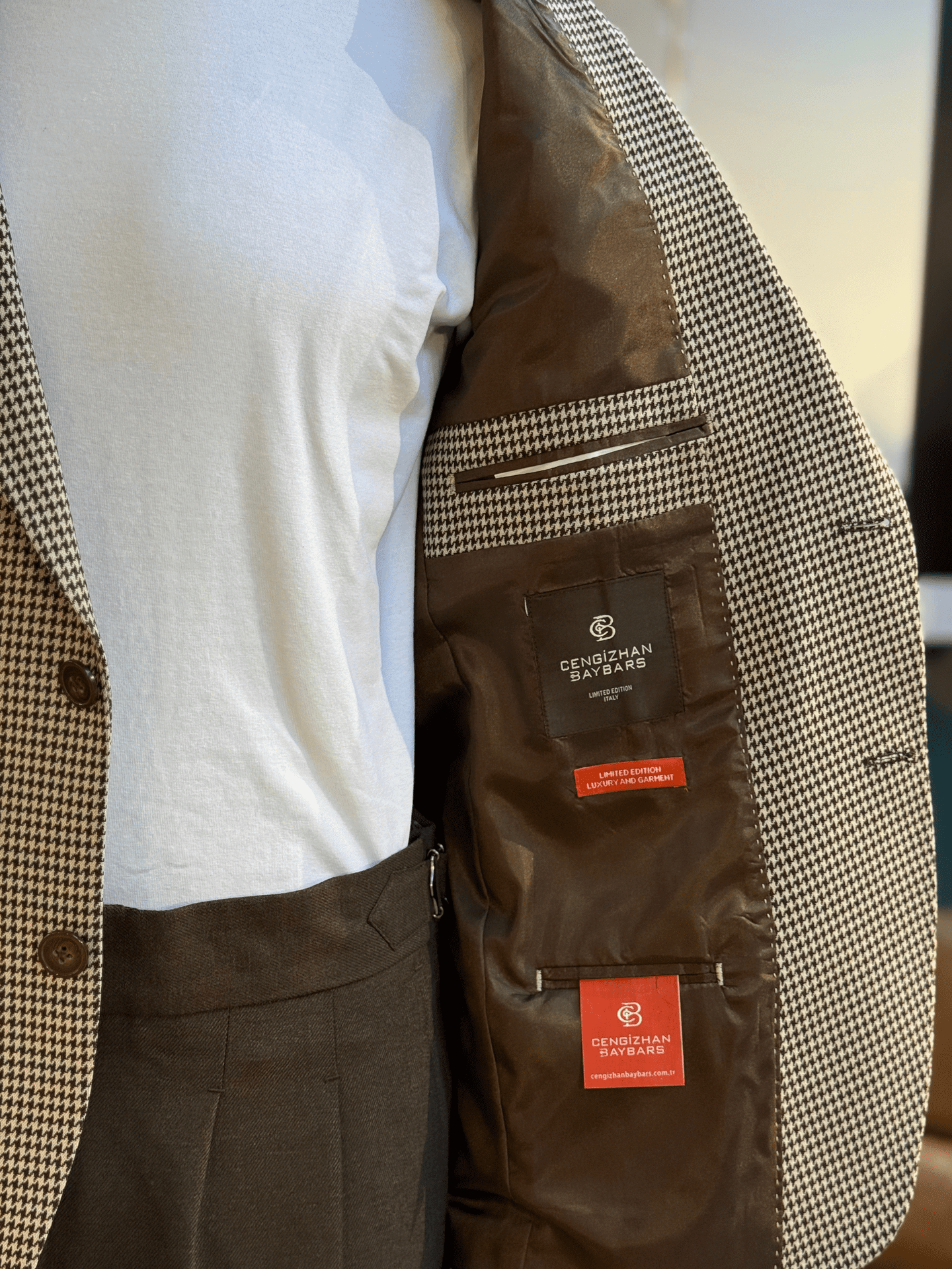 * Detaylar: Kaz ayağı desenli torba cep tek ceket
