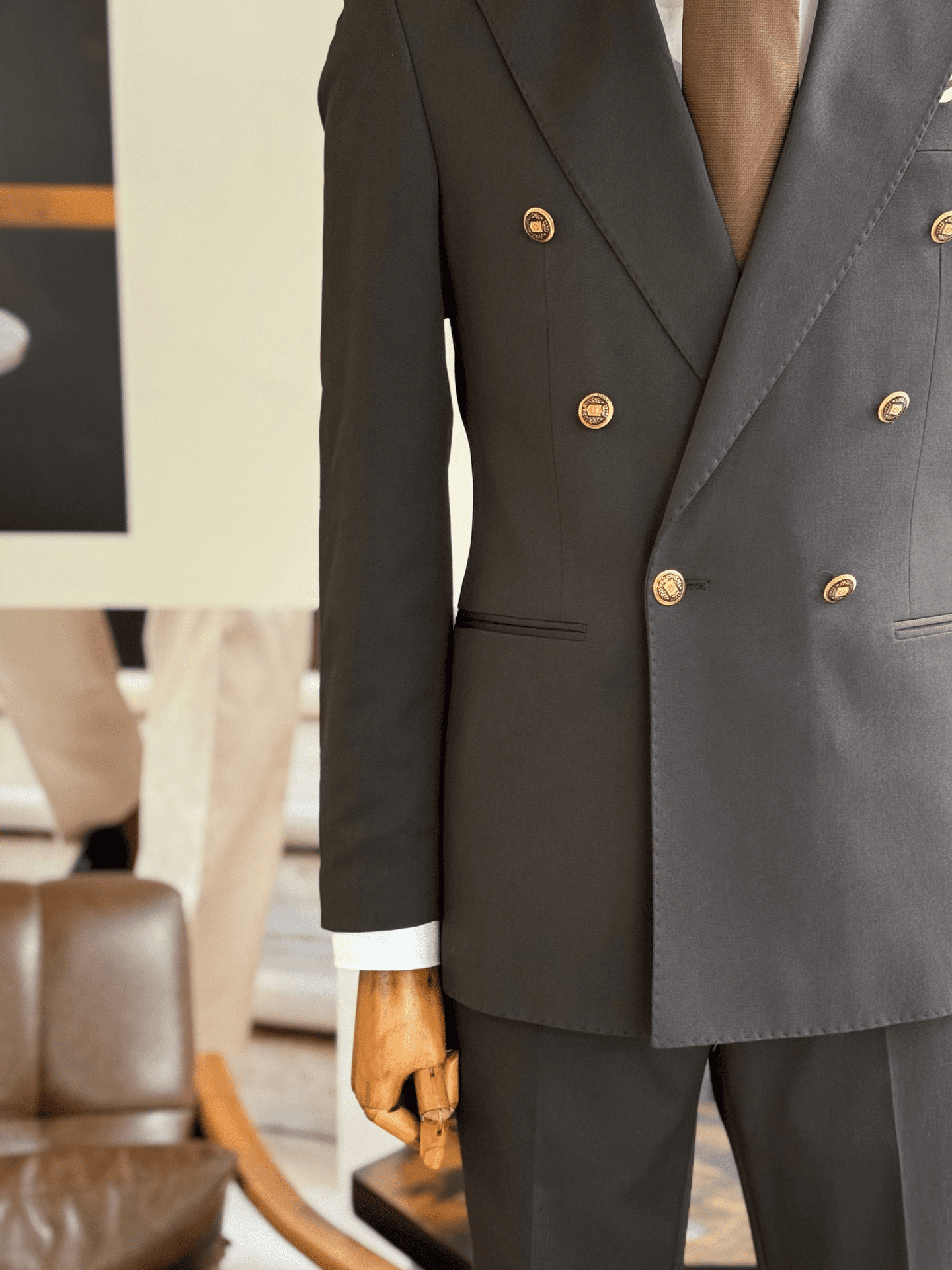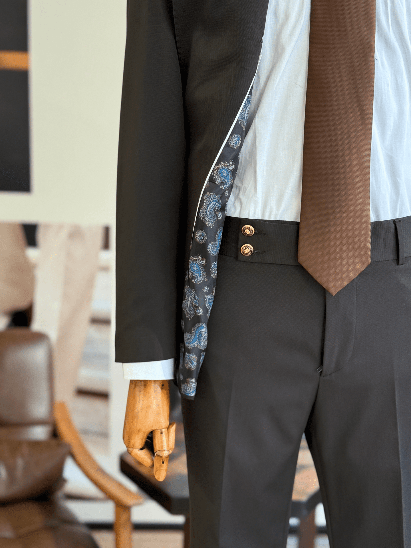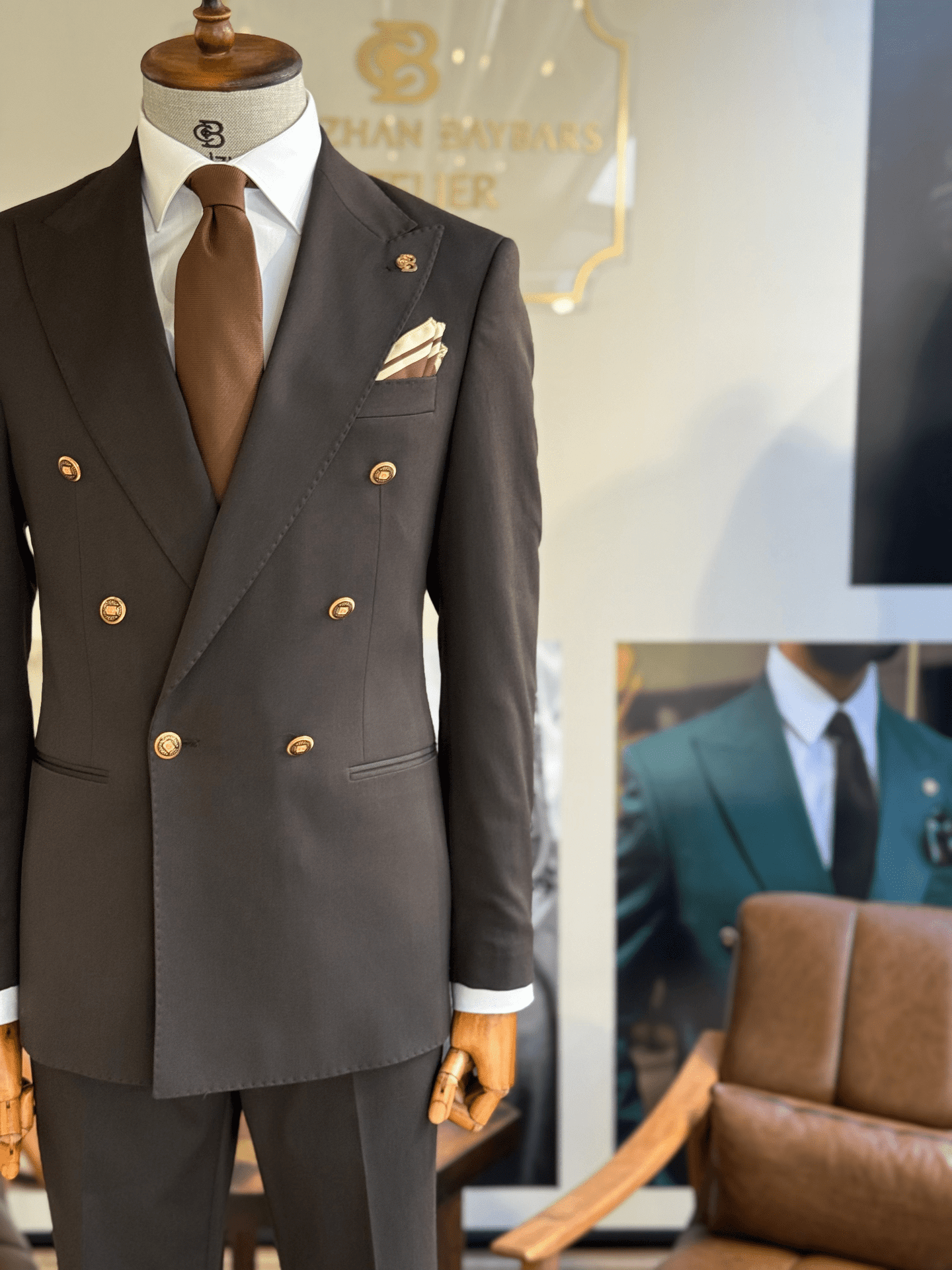 * Detaylar: Sivri yaka süs torba cep kruvaze takım elbise