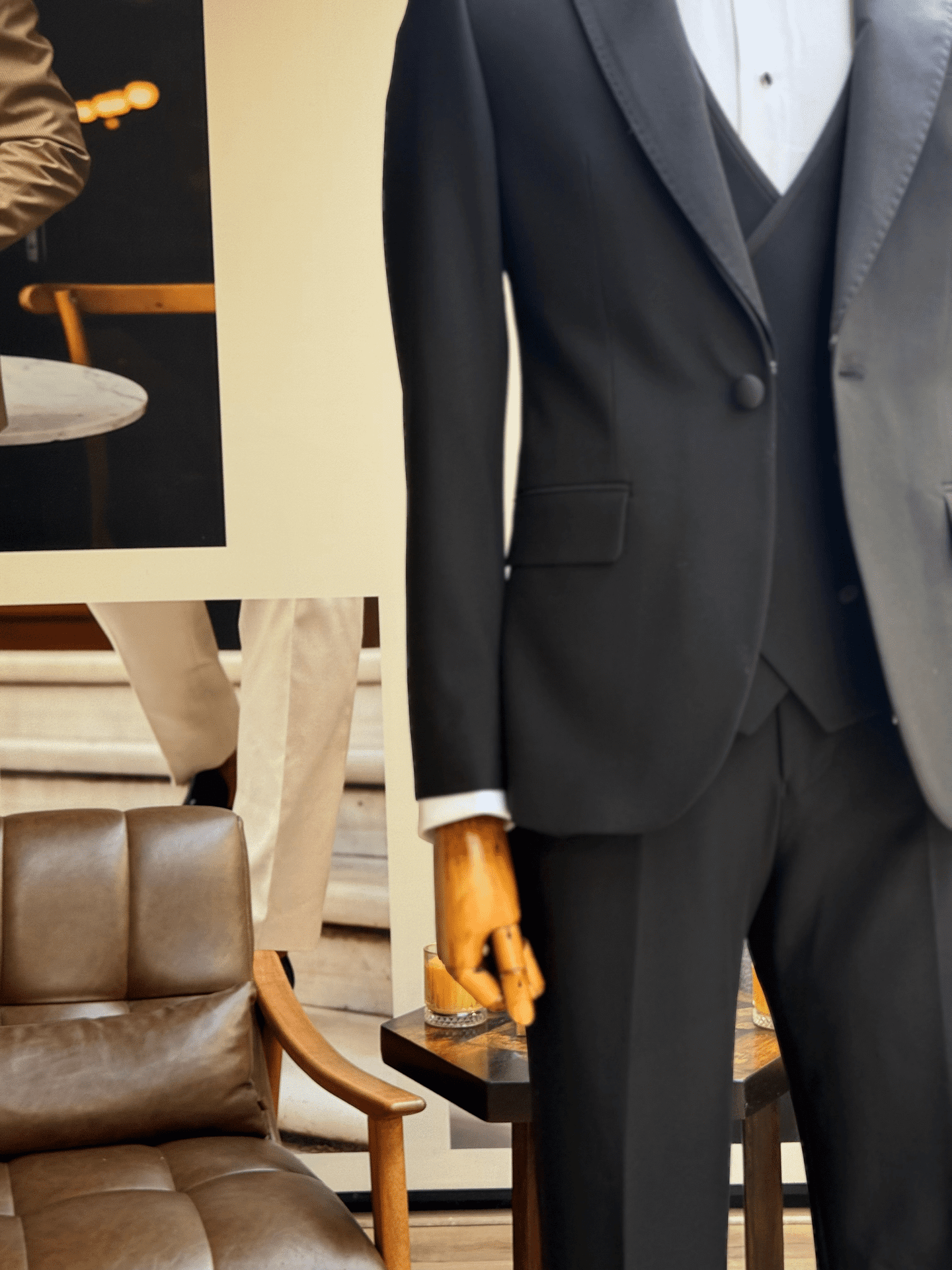 YELEKLİ SİVRİ YAKA DAMATLIK TAKIM ELBİSE