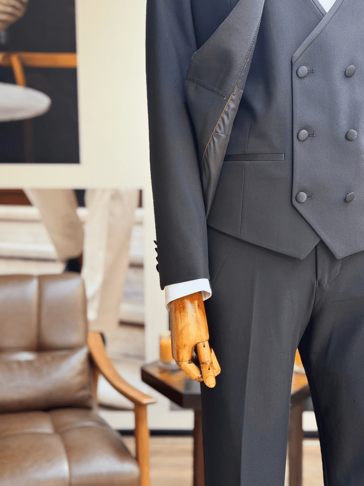 Cengizhan Baybars YELEKLİ SİVRİ YAKA DAMATLIK TAKIM ELBİSE